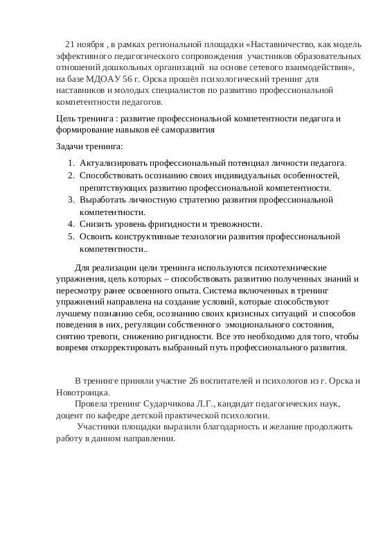Развитие профессиональной компетентности педагога и навыков ее саморазвития.