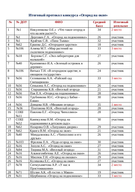 Итоговый Протокол Конкурса