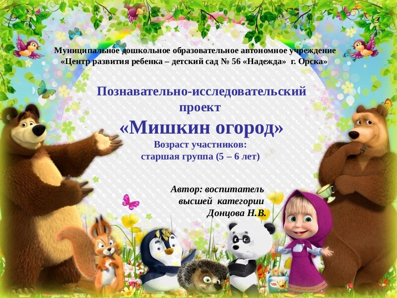 1 Место МДОАУ №56(2.)Проект Мишкин Огород, Донцова Н.В.