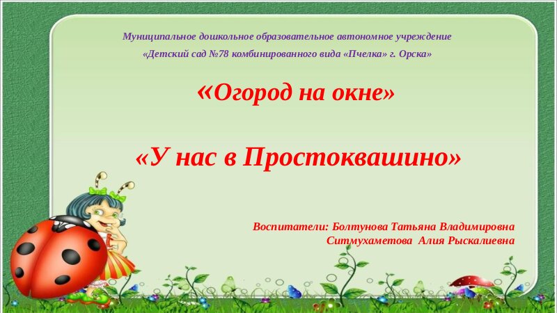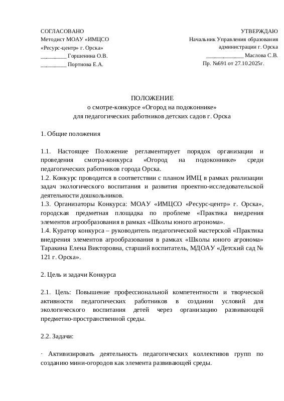 Положение Огород На Окне Для Педагогов