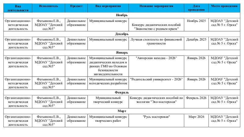 План конкурсов на 2025-2026 учебный год.